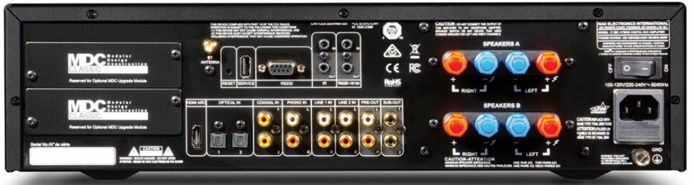 Phono / MM / USB A / for firmware update / коаксиальный S/P-DIF / 2 шт / оптический / 2 шт / RS-232 вход управления (ИК)