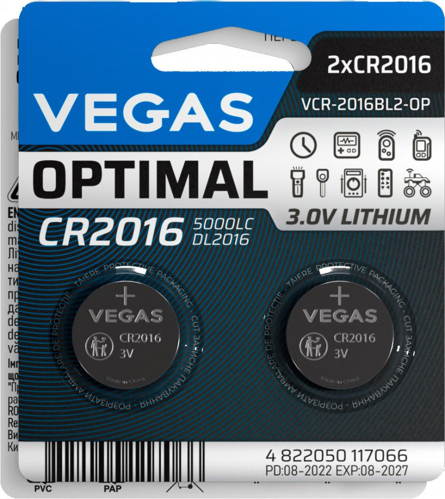 Аккумулятор / батарейка Vegas Optimal 2xCR2016 (VСR-2016BL2-OP)