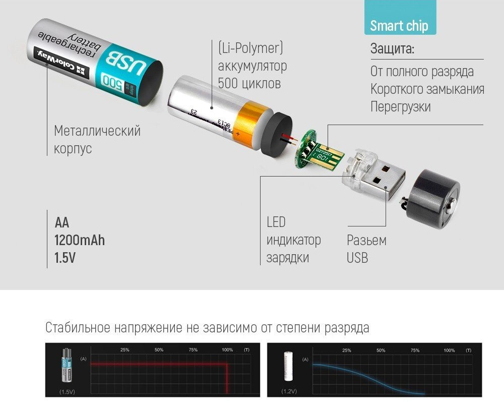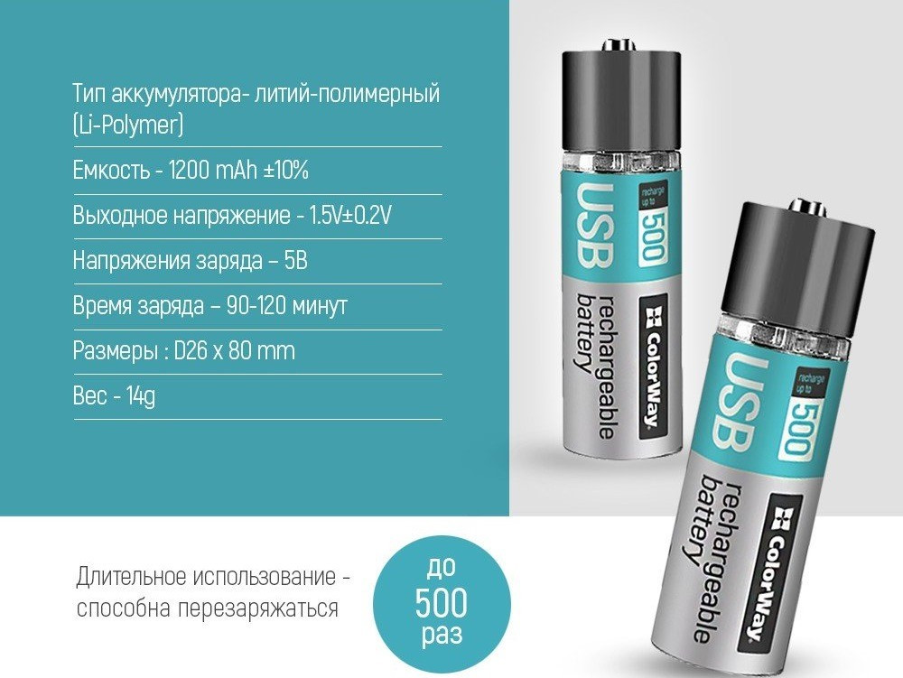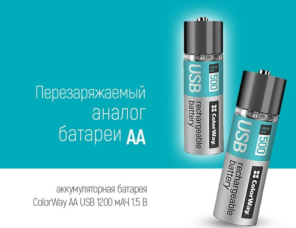 Аккумулятор ColorWay 2xAA 1200 mAh USB A (CW-UBAA-02)
