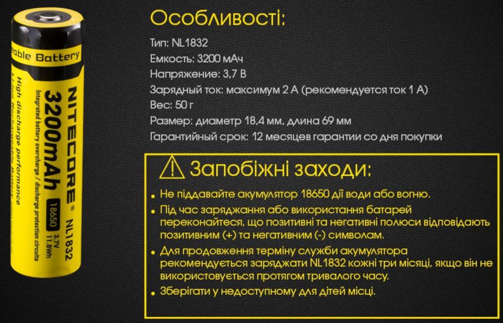Аккумулятор Nitecore NL1834 3400 mAh
