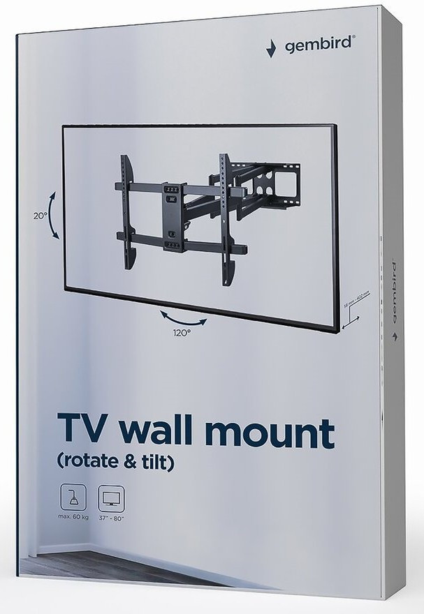 Настінний кронштейн Gembird WM-80ST-02 поворотний 37” - 80” (до 60 кг)