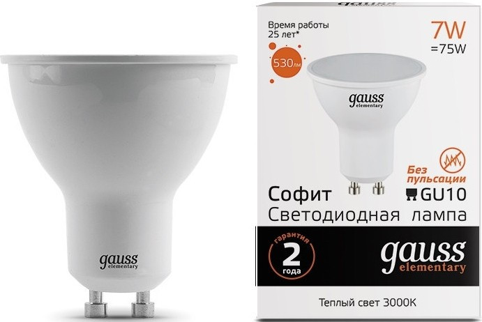 | Gauss LED ELEMENTARY MR16 7W 3000K GU10 | 7 Вт | 3000 К | Сравнить цены |