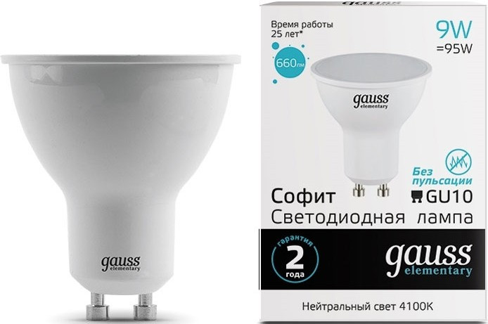 Лампочка Gauss LED ELEMENTARY MR16 9W 4100K GU10 13629