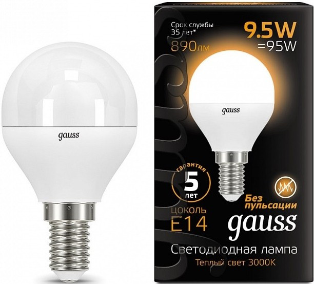 | Gauss LED G45 9.5W 3000K E14 105101110 | 9.5 Вт | 3000 К | Сравнить цены |