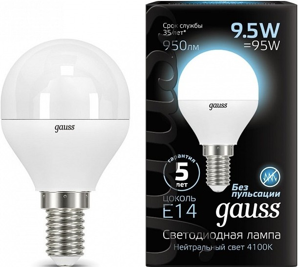 Лампочка Gauss LED G45 9.5W 4100K E14 105101210