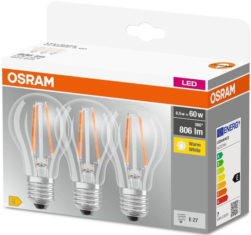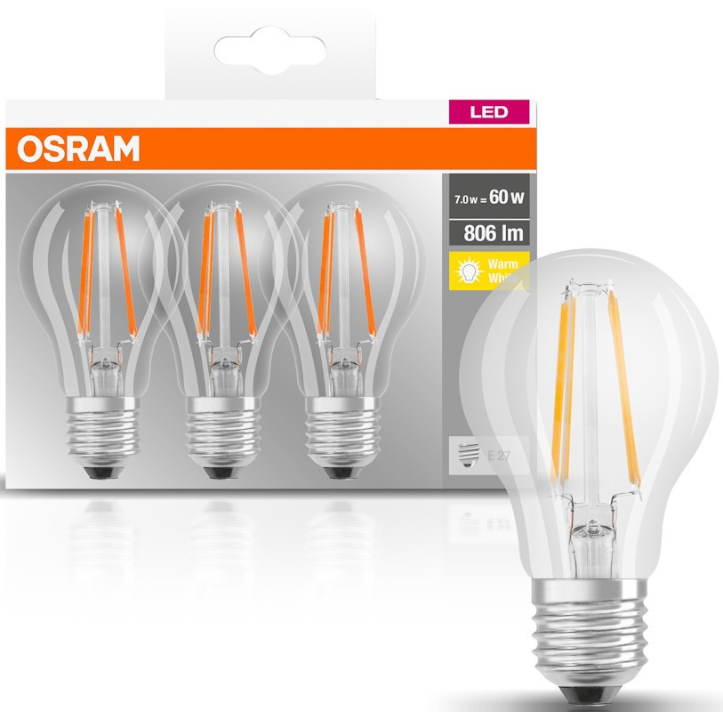 Лампочка Osram LED Base A60 7W 2700K E27 3 pcs