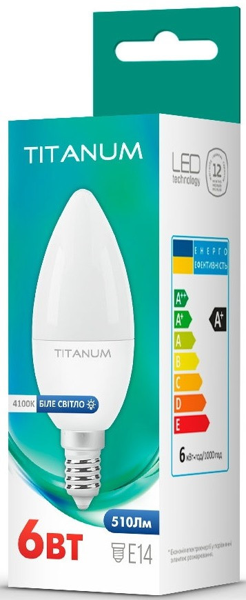Лампочка TITANUM C37 6W 4100K E14 TLC3706144