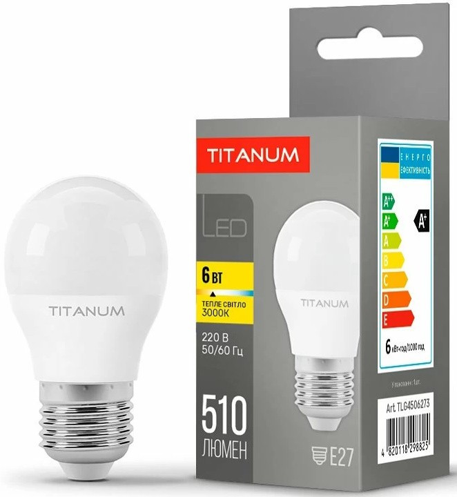 Лампочка TITANUM G45 6W 3000K E27