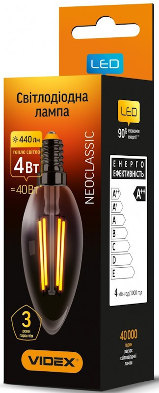Лампочка Videx Filament C37 4W 3000K E14