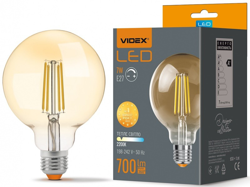Лампочка Videx Filament G95FAD Dimmable 7W 2200K E27