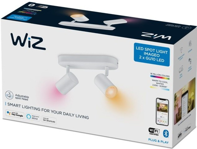 WiZ Світильник точковий накладний розумний IMAGEO Spots, 2х5W, 2200-6500K, RGB, Wi-Fi, білий (929002658801)