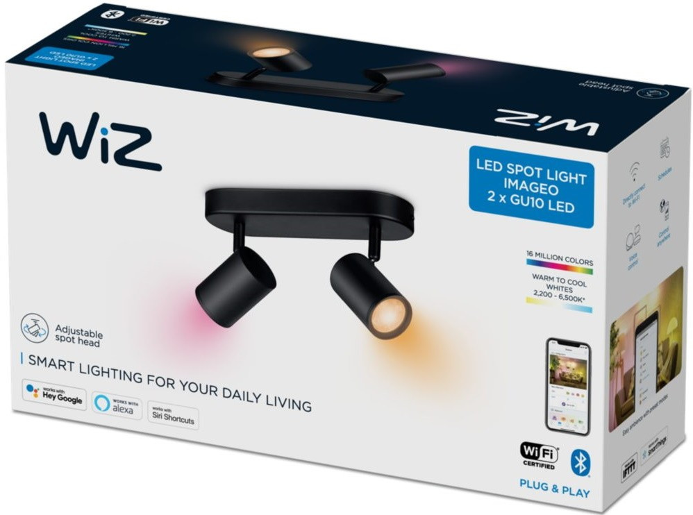 WiZ Світильник точковий накладний розумний IMAGEO Spots, 2х5W, 2200-6500K, RGB, Wi-Fi, чорний (929002659101)