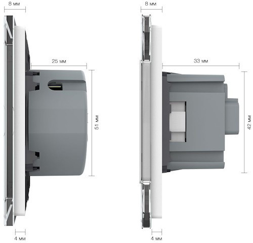 Глубина встраивания - 33 мм,
