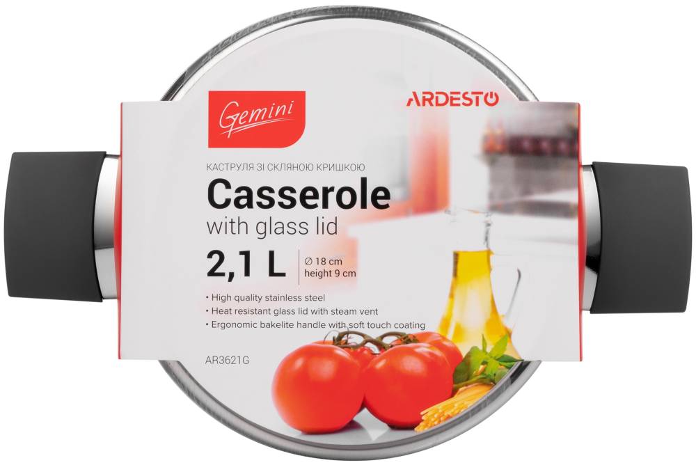 ARDESTO Каструля Gemini, скляна кришка, 2.1 л, нержавіюча сталь (AR3621G)
