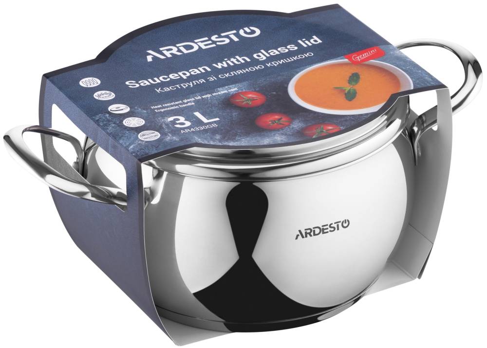 ARDESTO Каструля Gemini, скляна кришка, 3.0 л, нержавіюча сталь (AR4330GB)