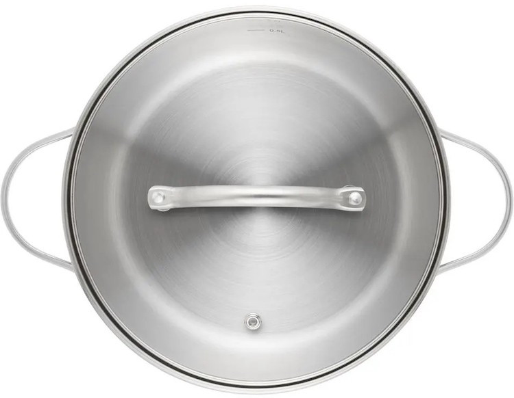 совместимость с индукцией мытье в посудомойке отверстие для пара многослойное дно шкала литража