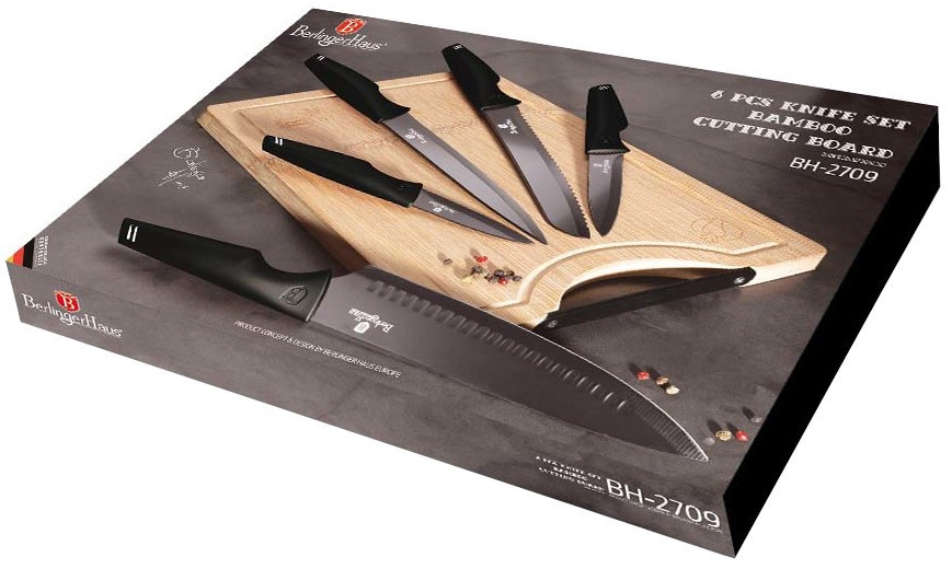 Набір ножів з обробною дошкою Berlinger Haus Black Silver Collection (BH-2709) (M-BH-2709)