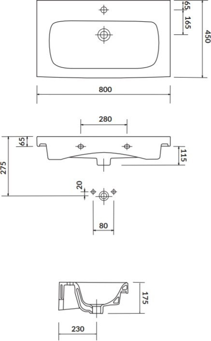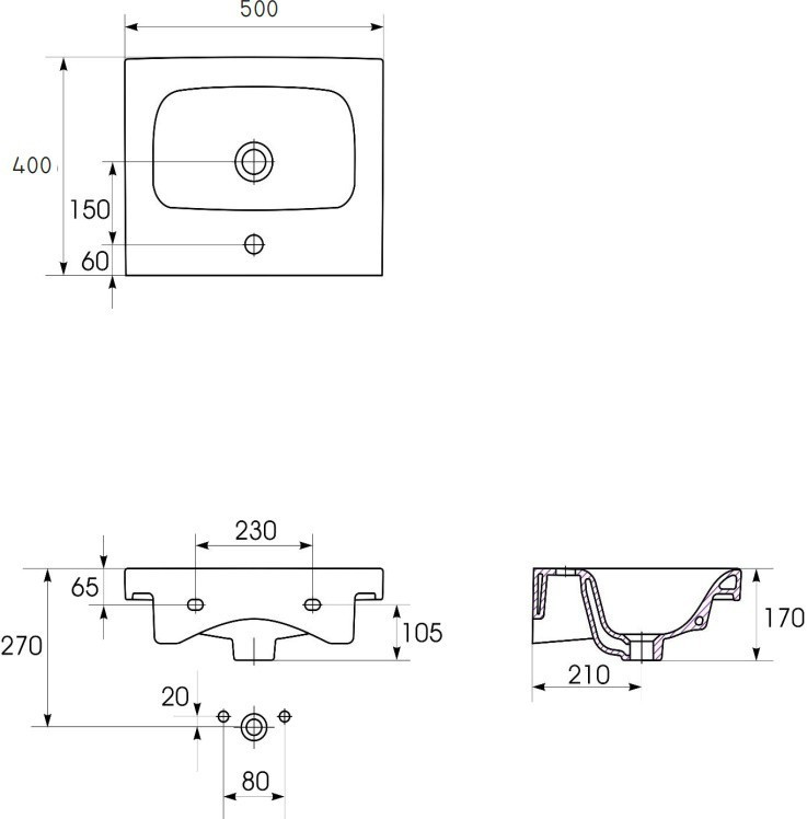 Розташування умивальника - по центру,