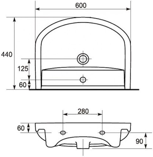 Розташування умивальника - по центру,