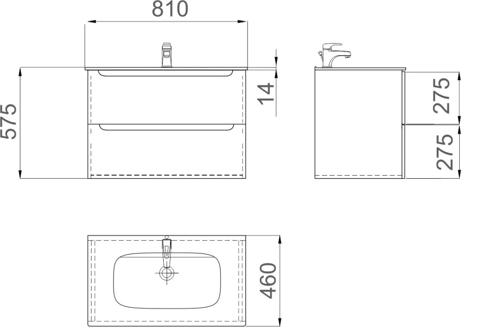 Розташування умивальника - по центру,