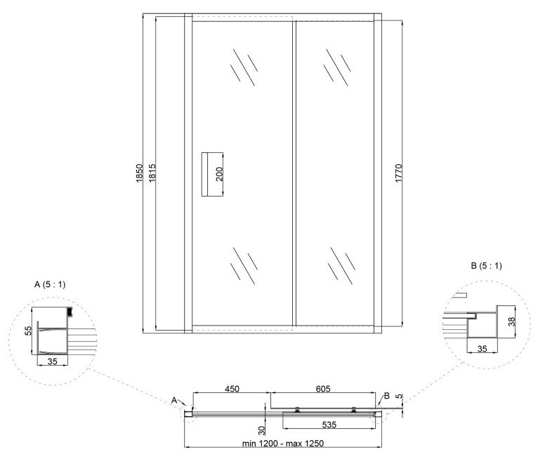 Ширина дверей (входу) - 450 мм,