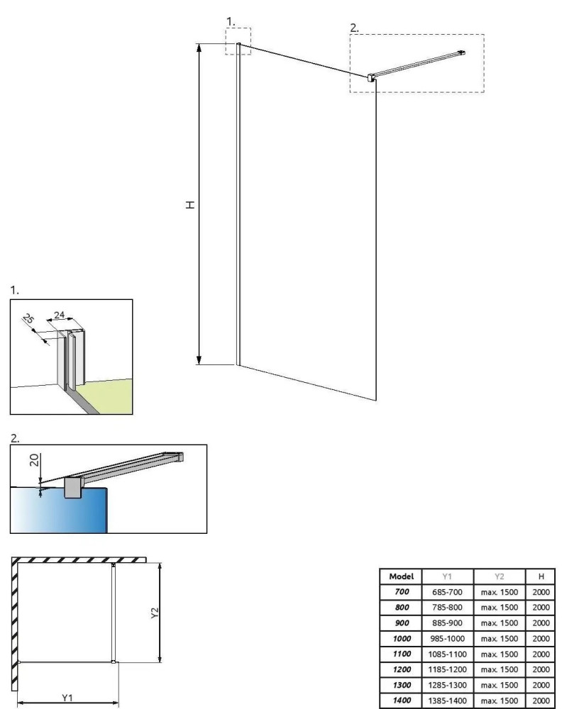 Тип - перегородка (walk-in),