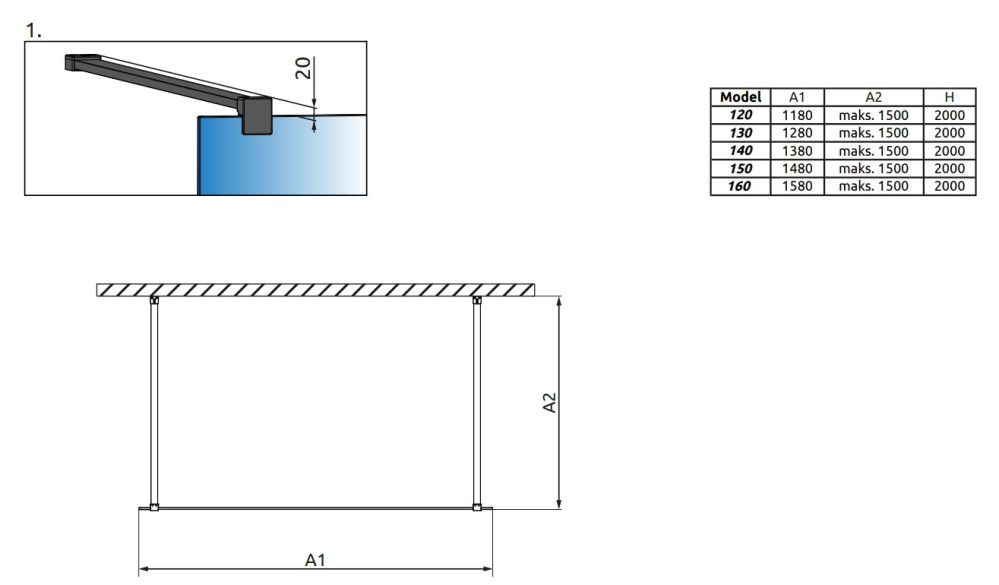 Тип - перегородка (walk-in),