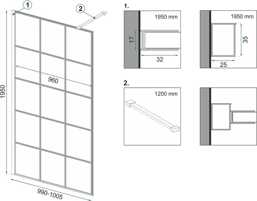 Тип - перегородка (walk-in),