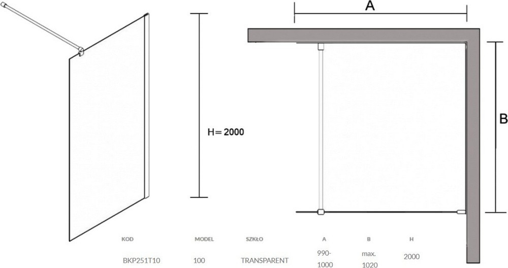 Душова перегородка Sea Horse Easy In 100 BKP251T10