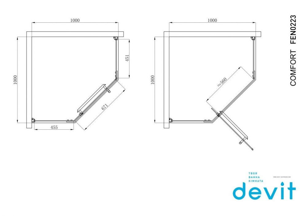 Душова кабіна Devit Comfort 100x100 (Профіль - хром, скло - прозоре) FEN0223
