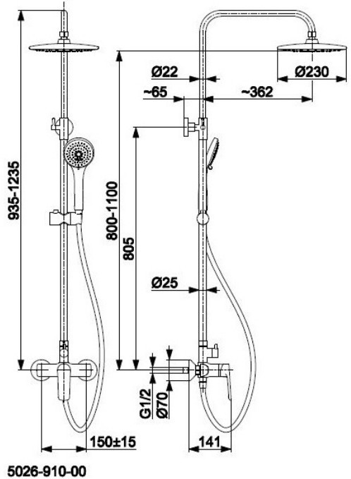 Довжина шланга (ручний душ) - 150 см,