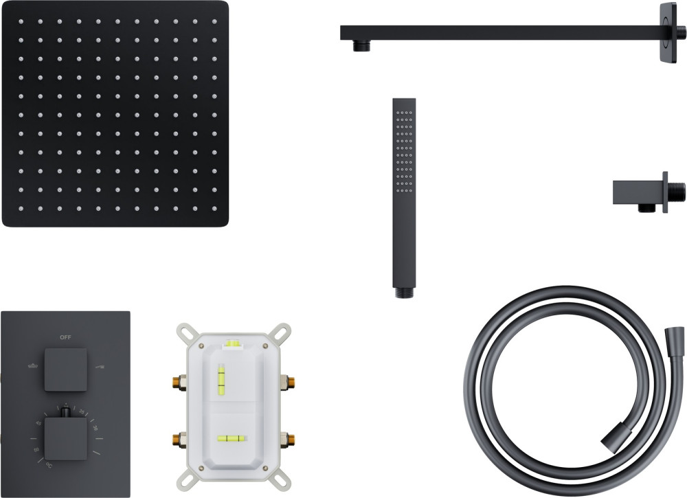 Душовий гарнітур прихованого монтажу Corsan ADOUR BLACK+BOX чорний з термостатом Z01TBL