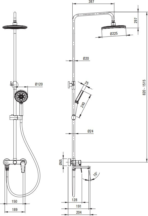 Довжина шланга (ручний душ) - 150 см,