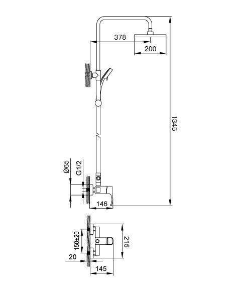 Розміри верхнього душу - 200 мм,