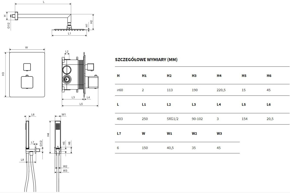 Форма верхнього душу - квадратна,