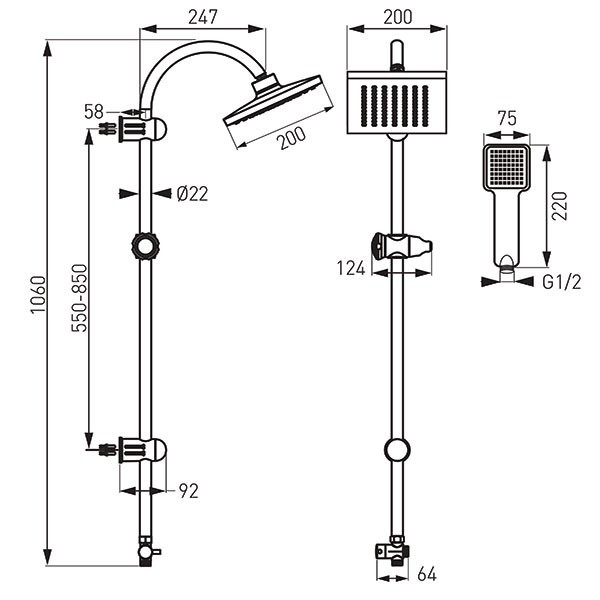 Форма верхнього душу - квадратна,