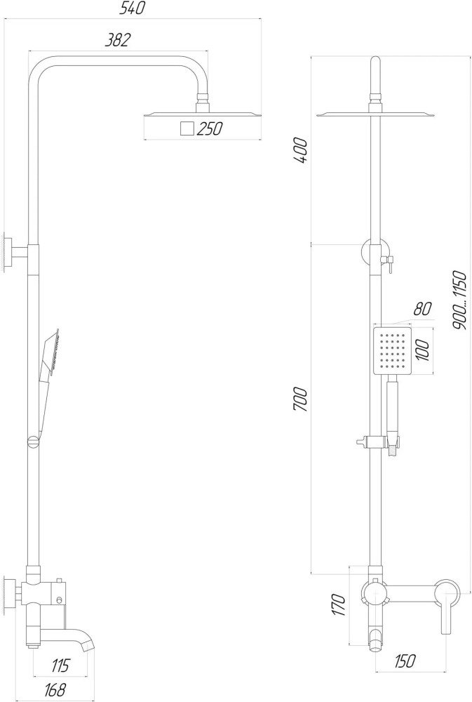 Розміри панелі/стійки - 900-1150x382 мм,