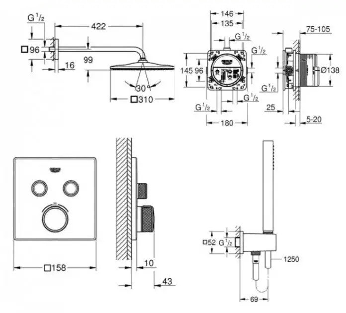 Розміри верхнього душу - 310 мм,