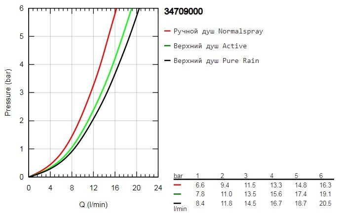 Витрата води (ручний душ) - 11.5 л/хв / максимальний, при тиску води 3 бар /,