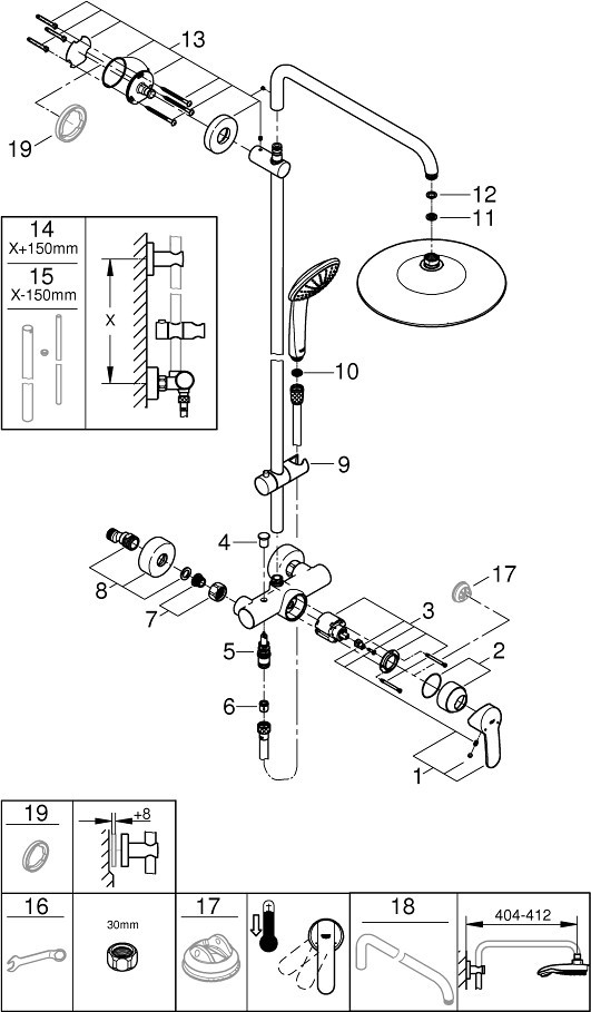 Кут нахилу (верхній душ) - 30 °,
