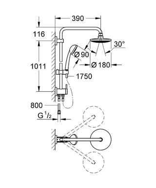 Кут нахилу (верхній душ) - 30 °,