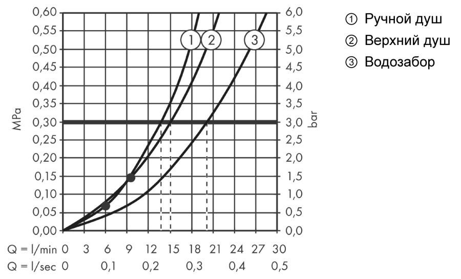 Витрата води (ручний душ) - 13.5 л/хв / при тиску води 3 бар /,