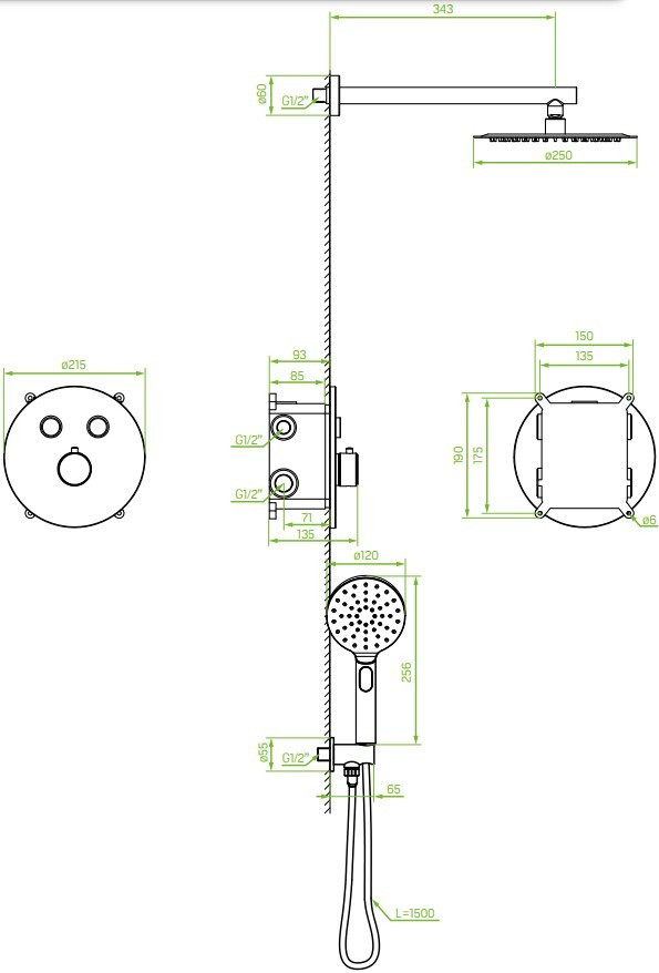 Форма верхнього душу - кругла,