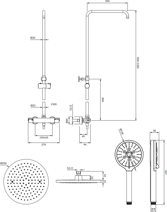 Розміри ручного душу