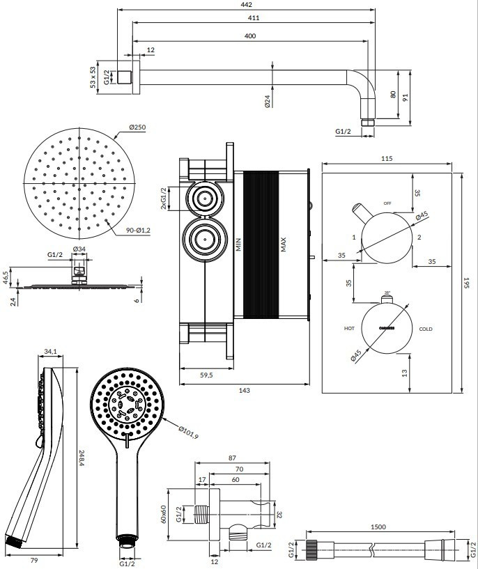 Розміри ручного душу