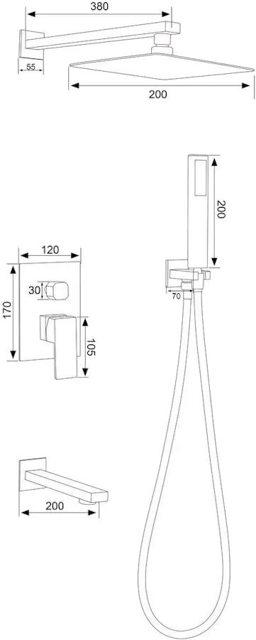 Розміри верхнього душу - 200 мм,