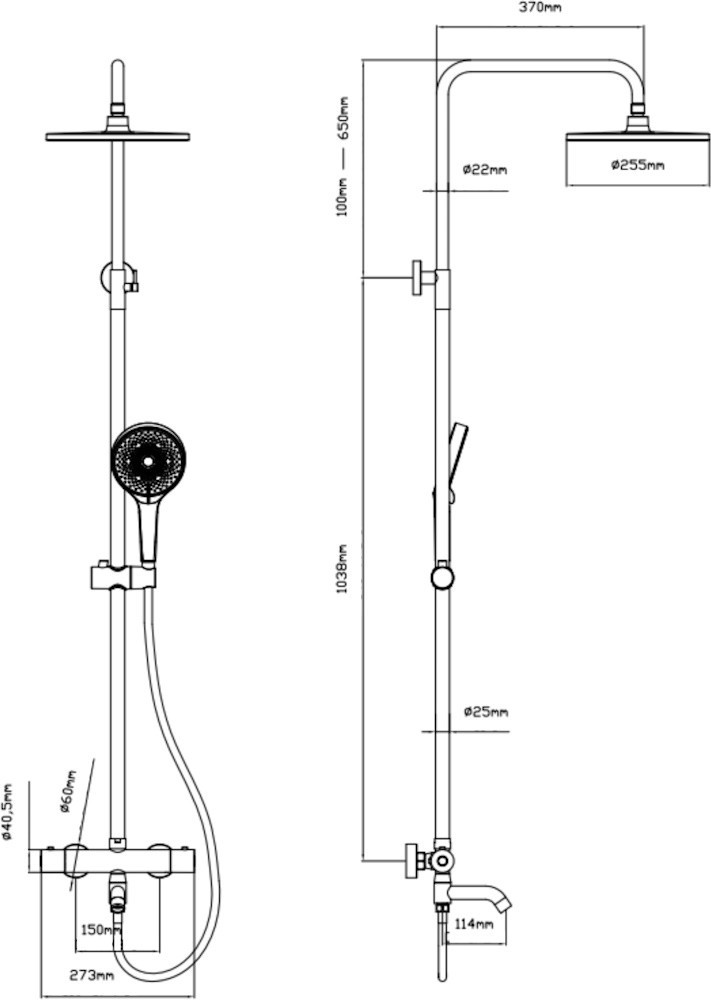 Довжина шланга (ручний душ) - 150 см,