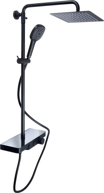 душова система Qtap Sloup з полицею, термостатична, чорна матова (QTSL57T105VNKBB)