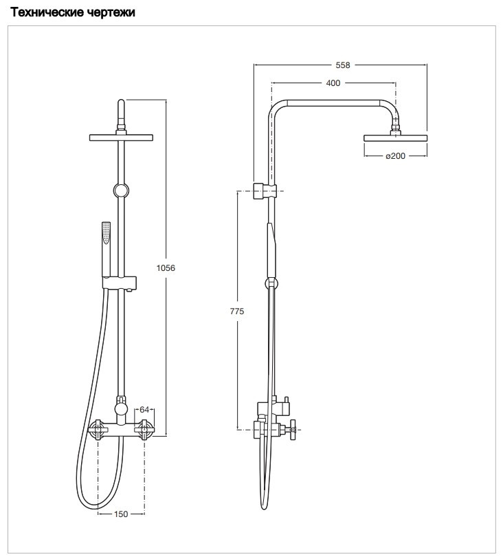 Розміри верхнього душу - 200 мм,