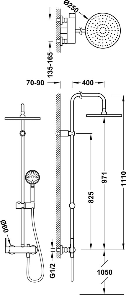 Форма верхнього душу - кругла,